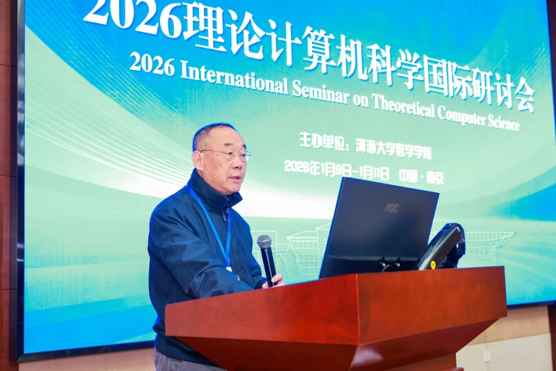 1月9至11日,由万博体育-万博体育app-万博体育app下载 主办的2026理论计算机科学国际研讨会在河海大学江宁校区顺利召开。本次研讨会由美国纽约州立大学李克勤院士和万博体育-万博体育app-万博体育app下载 高炜教授担任主席,江苏理工万博体育 信息中心主任朱林立教授,中国工业与应用数学学会组合图论专业委员会秘书长、上海大学康丽英教授,华南理工大学杨晓伟教授,华东理工大学郭继明教授担任副主席。来自国内外的100余名专家学者齐聚一堂,围绕数学与计算机科学的诸多前沿问题展开深入交流。万博体育-万博体育app-万博体育app下载 领导班子及师生代表参加会议。
